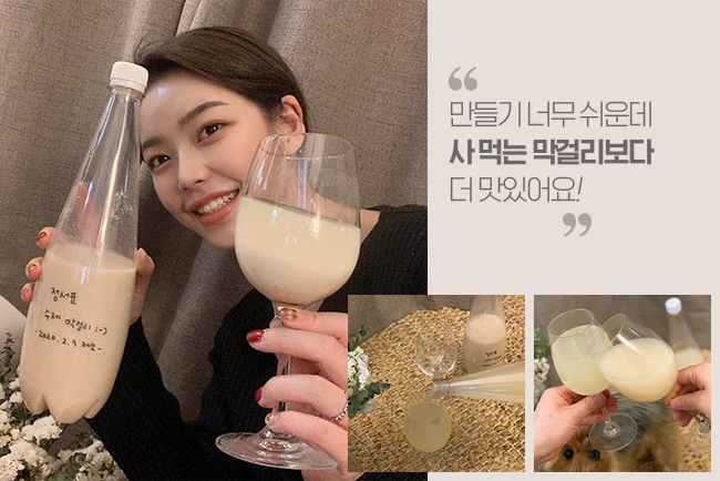 쉬는 날이면 뭘 할지 고민이었는데 이번 휴일은 수제 막걸리를 만들며 특별한 시간을 보낼 수 있었어요. 처음에는 막걸리 분말과 물이 잘 섞이지 않고 덩어리 져서 제대로 만들고 있는지 걱정되기도 했는데요. 24시간 숙성까지 시키고 나니 맛과 향, 탄산까지 모두 제가 평소 마시던 막걸리와 똑같더라고요. 냉장고에서 5일 더 숙성해 설날 저녁 전과 곁들여 먹으니 명절 분위기에 딱이었어요.