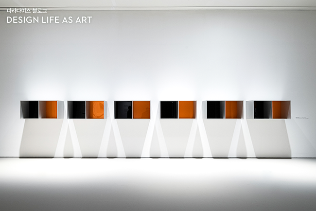 전시 공간 2층으로 이동하면, 미니멀리즘과 팝아트 작품들로 채워진 PART3 전시 공간이 펼쳐집니다. 그중 가장 먼저 눈에 들어오는 작품은 미니멀리즘의 개척자라고 불리는 도날드 저드의 작품입니다. 의도적으로 작가의 손을 거치는 과정을 거부하고, 알루미늄, 플라스틱을 활용한 것이 특징입니다.