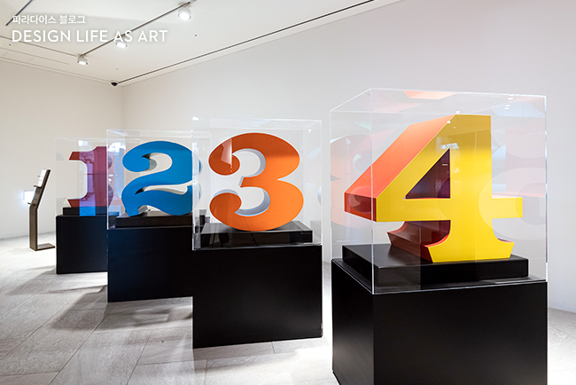 로이 리히텐슈타인, 제임스 로젠퀴스트의 작품을 거쳐, 마지막 별도 공간에서는 로버트 인디애나의 설치 작품을 감상할 수 있는데요. 숫자는 로버트 인디애나의 대표적인 도상입니다. 숫자 조각의 배색은 각 숫자와 연관된 시기의 상징적인 의미를 직관적으로 전달하고 있습니다. 각 숫자들은 출생부터 소멸을 상징하는데요. 전시에 직접 방문해 그 의미를 천천히 감상해 보는 건 어떨까요?