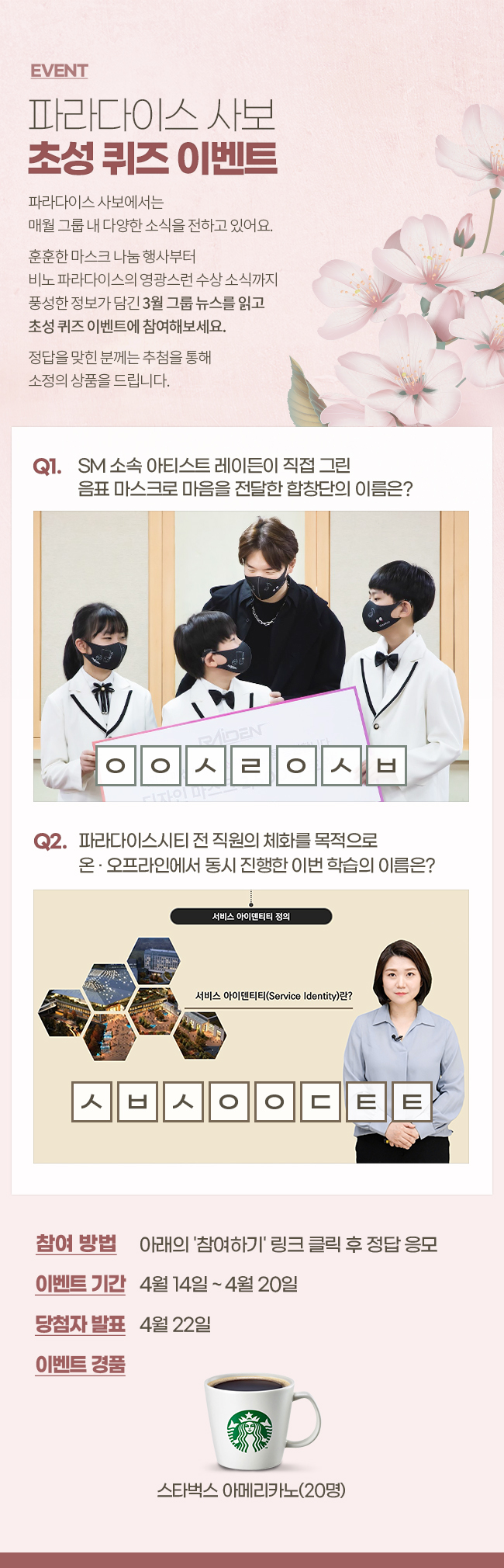 파라다이스 사보 초성 퀴즈 이벤트