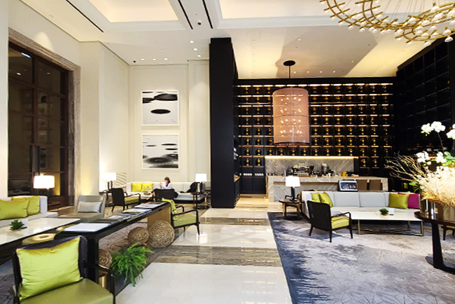 ▲ 통유리 너머로 푸른 정원이 보이는 로비라운지 크리스탈 가든