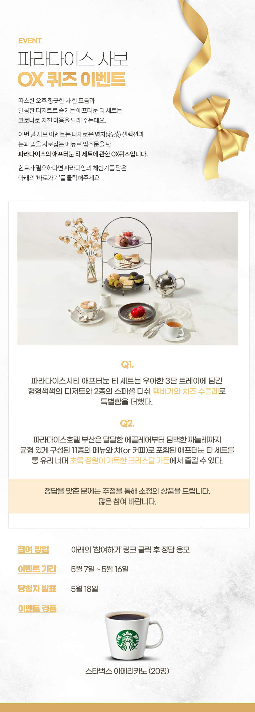 지난 호 애프터눈 티 별별체험단 후기를 보고 OX퀴즈 이벤트에 참여해보세요.
