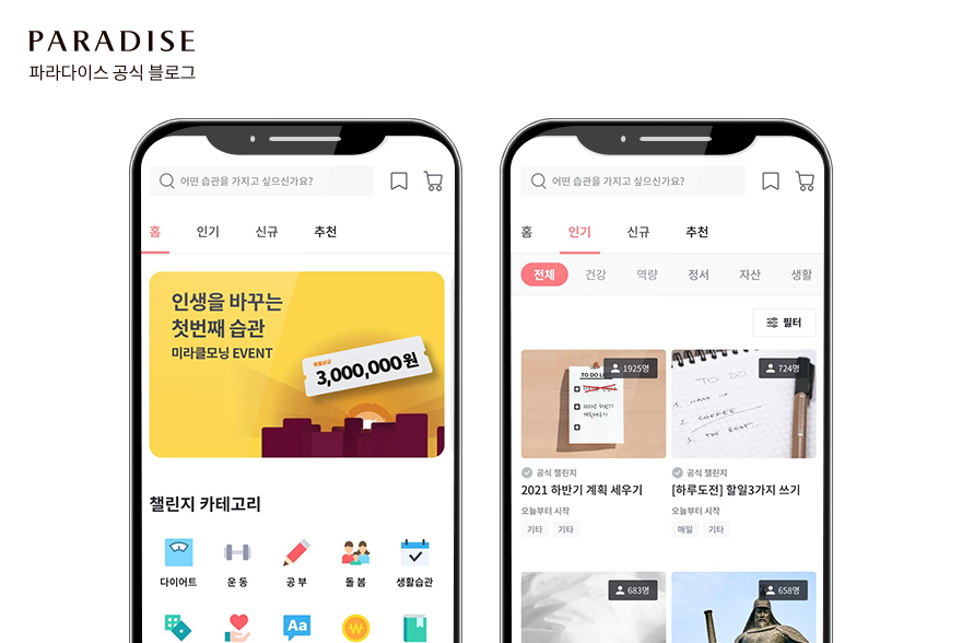 특히 작년 코로나 19로 집콕이 늘어난 시기에 많은 사람들이 챌린저스 앱을 이용해 자신의 목표를 이루며 소소한 행복을 느끼기도 했는데요. 게다가 올해 초 미라클모닝이 유행하며 많은 사람들이 챌린저스 앱을 통해 크고 작은 목표를 설정하고 달성했습니다.