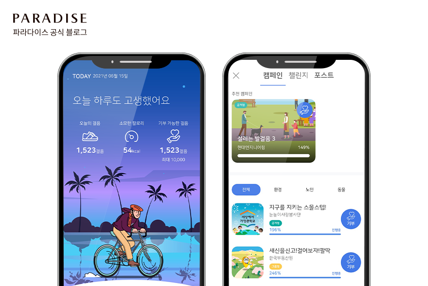 또한 앱에서 자신의 걸음 수와 기부 현황을 비롯해 진행이 완료된 캠페인의 결과도 확인 할 수 있어 내가 어떤 사람들에게 도움이 됐는지 알 수 있습니다. 일상 속 작은 습관으로 좋은 영향을 만들고 싶다면, 빅워크 앱으로 걸음을 모으고 다양한 기부 캠페인에 참여해보세요