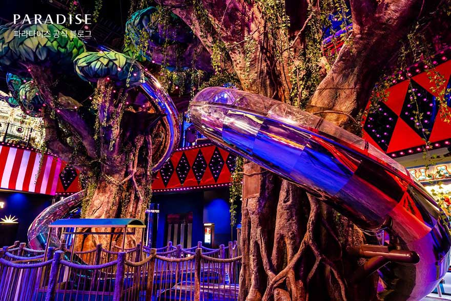 씨메르에 이어 소개할 원더박스는 밤의 유원지를 컨셉으로 한 가족형 실내 테마파크입니다. 원더박스는 다이나믹한 어트랙션과 환상적인 퍼포먼스가 가득해 이색적인 가족 나들이 장소로 자리 잡았는데요. 범퍼카, 회전목마 등 동심을 느낄 수 있는 낭만 가득한 놀이기구부터 7M 높이에서 즐기는 스카이트레일, 국내 최초 360도 회전하는 아찔한 회전 어트랙션 메가믹스, 온가족이 함께 즐기는 짜릿한 자이언트 슬라이드까지. 국내 최고의 복합 엔터테인먼트 리조트, 파라다이스시티 테마파크답게 남녀노소 모두 흠뻑 빠져 즐길 수 있는 다양한 어트랙션이 준비되어 있습니다.