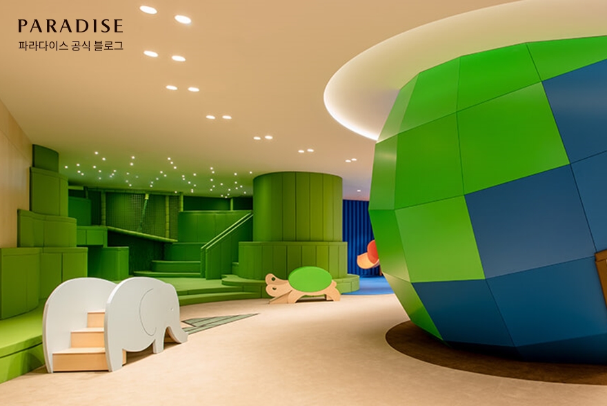 먼저 소개할 파라다이스시티의 키즈존은 지구를 컨셉으로 아이들의 오감을 자극하고 창의력과 꿈을 길러주는 자연친화적 체험 공간입니다. 키즈존에는 다양한 교구들과 놀이시설이 준비되어 있어 아이들이 마음껏 뛰어 놀 수 있습니다.