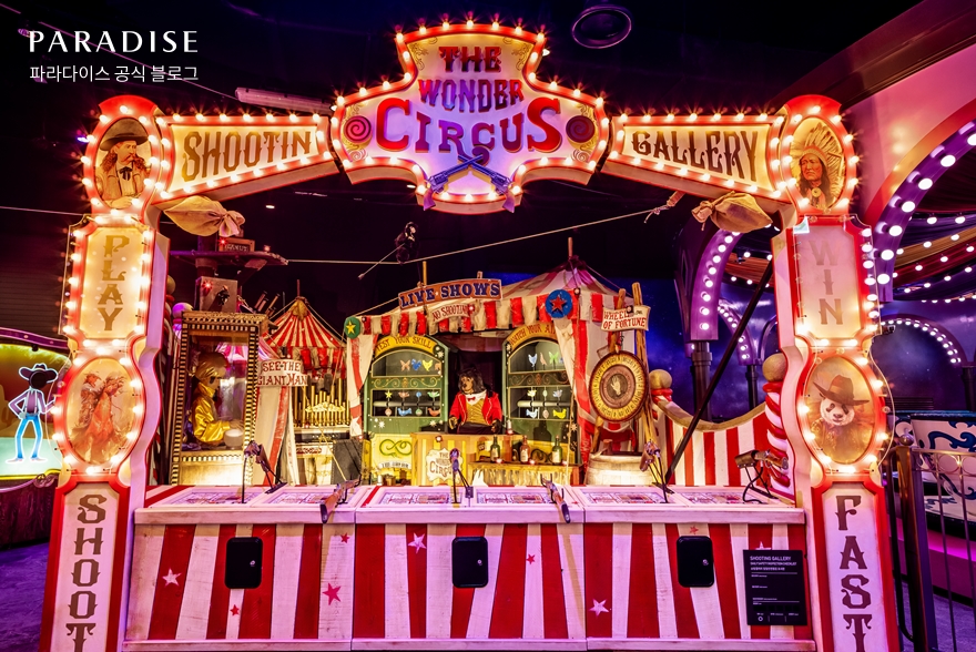 파라다이스시티의 원더박스는 밤의 유원지를 컨셉으로 한 가족형 실내 테마파크입니다. 신비롭고 환상적인 분위기를 연출하는 원더박스는 범버카, 회전목마, 관람차와 같은 대표적인 놀이기구와 전 연령이 이용 가능한 카니발 게임 시설을 갖추고 있는데요. 이와 함께 특별한 기념품과 이색적인 음식으로 가득한 F&B 시설까지 한 곳에서 만날 수 있습니다. 원더박스를 방문해 어린 시절 꿈꿨던 환상의 세계를 마주해 보는 걸 추천합니다.