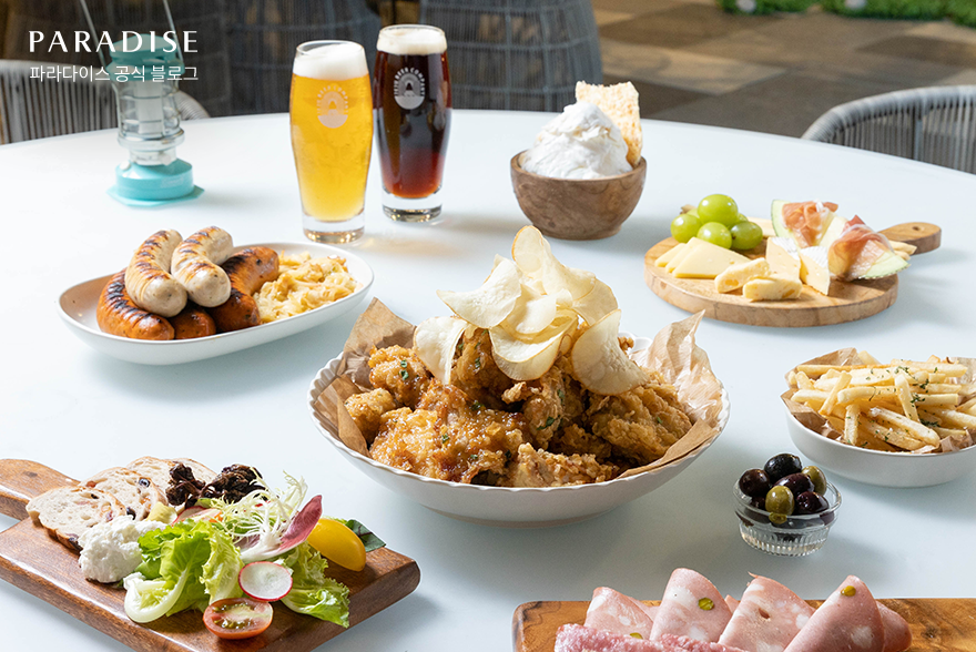 ‘파라다이스시티 X 넥슨 카트라이드 썸머케이션’ 패키지 이용 고객에게는 썸머 펍 가든의 패밀리 플래터 세트가 제공되고 있는데요. 현재 파라다이스시티의 ‘가든 바이 라쿠’에서 운영되고 있는 ‘썸머 펍 가든’에서는 제주맥주의 대표 ‘제주위트에일’과 새롭게 선보이는 흑맥주 ‘거멍에일’을 만나볼 수 있는데요. 맥주와 함께 제공되고 있는 패밀리 플래터 세트는 호텔 셰프가 특별히 개발한 시그니처 치킨, 그릴드 소시지, 감자튀김, 빙수로 구성되어 있어, 소중한 가족들과 시원한 여름 밤의 추억을 만드는데 특별함을 더해줍니다.