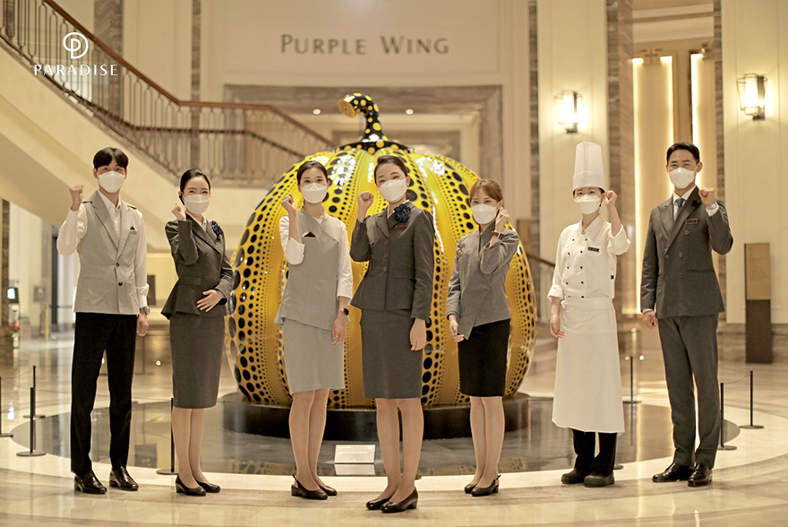 호텔 1층 ‘쿠사마 야요이’의 작품 <Great Gigantic Pumpkin>이 자리잡은 와우존에서 파라다이스시티만의 가면 무도회 마스커레이드 쇼가 펼쳐집니다. 베네치아 카니발을 연상케 하는 의상의 퍼포먼서가 왈츠에 맞춰 춤을 추며 라이브로 바이올린을 연주합니다. 오후 2시와 7시 두 차례의 공연의 마무리엔 포토타임도 준비되어 있으니 특별한 사진으로 추억을 남겨보세요.