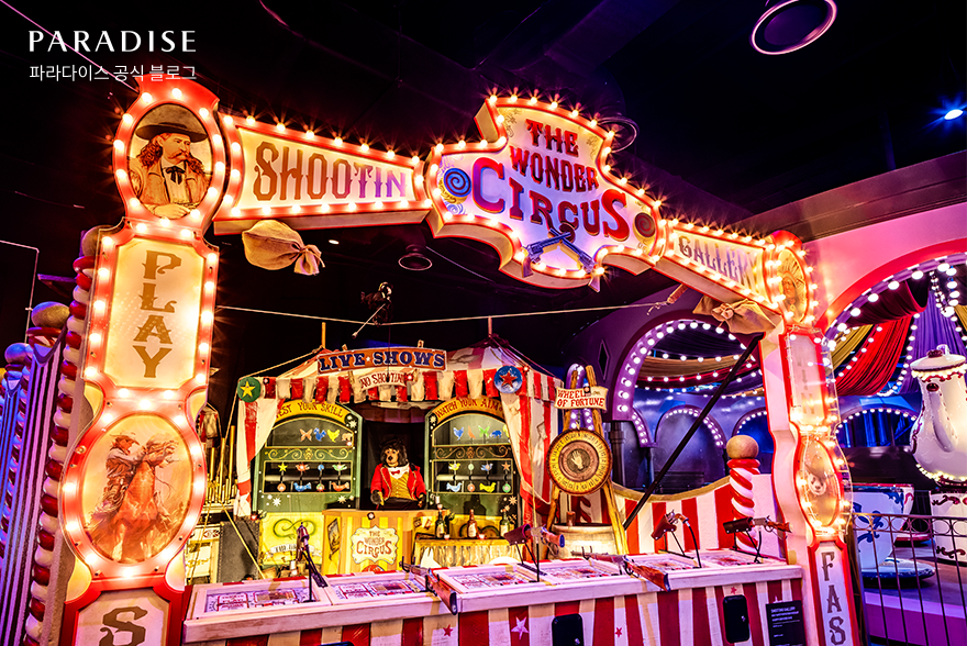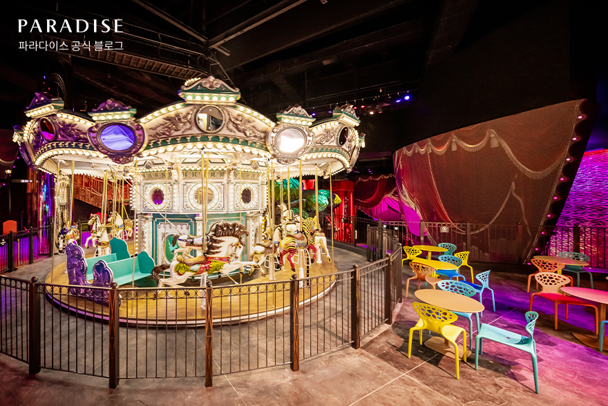 파라다이스시티 원더박스는 환상적인 밤의 유원지를 모티브로 꾸며진 가족형 실내 테마 파크입니다. 상상 속에만 존재하던 환상적인 놀이공원이 눈 앞에 펼쳐지는 특별한 경험을 할 수 있는 곳인데요. 회전목마와 범퍼카, 스카이트레일 등 다이나믹한 어트랙션은 물론, 다양한 선물도 획득할 수 있는 카니발 게임 시설도 곳곳에 마련되어 있어 온 가족이 함께 즐길 수 있습니다.
