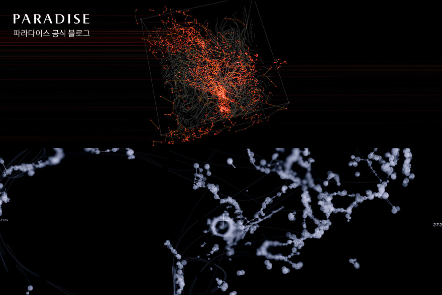 이번 파라다이스 아트 스페이스에서 최초로 만나볼 수 있는 허먼 콜겐의 또 다른 작품은 바로 ‘세이스믹-메시 테리토리(SEISMIK-Mesh territory)’인데요. 이 작품은 시각적, 청각적 자극이 뒤섞여 있는 혼란을 배경으로 지각의 충돌, 자기파, 거대한 소리를 내며 움직이는 물질들, 관념 등이 격렬하게 부딪히는 것을 표현하고 있습니다. 직접 전시를 관람하며, 압도적인 스케일의 대형 미디어 파사드에서 펼쳐지는 웅장한 장관을 감상해보세요.