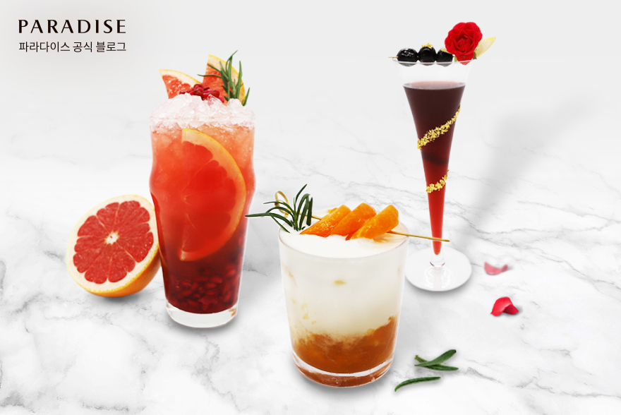 파라다이스시티의 라운지 파라다이스는 낭만적인 가을의 분위기를 한 잔에 담은 시즌 음료 3종을 준비했습니다. 석류와 자몽으로 만든 청량한 에이드 ‘BE PRETTY’, 가을을 대표하는 과일 홍시를 담은 향긋한 홍시 밀크 티, 레드 와인으로 만든 로맨틱한 가을 칵테일 ‘ROMANTIC AUTUMN’이 바로 그 주인공인데요.