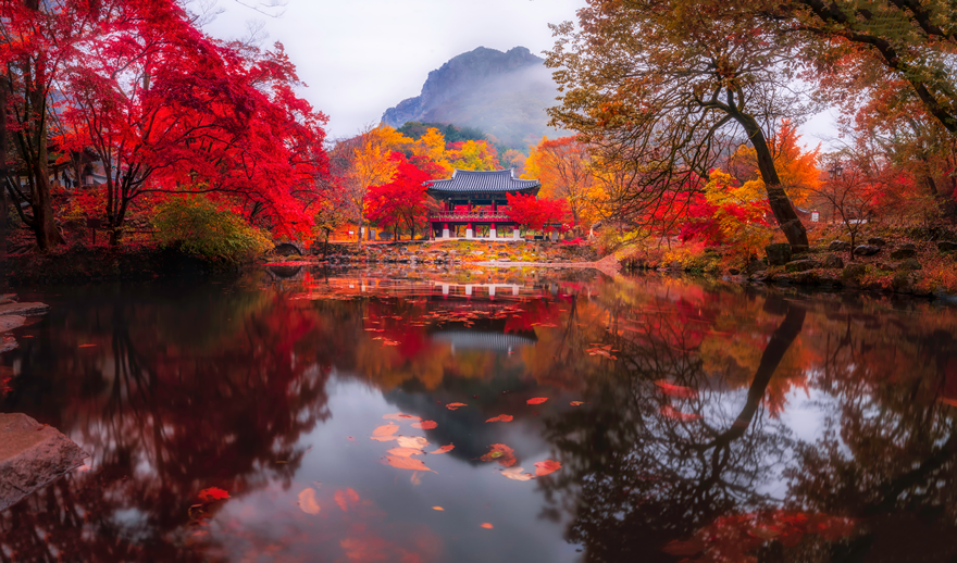 푸른 바다가 아름다운 부산에도 붉은 단풍을 감상하기 좋은 명소가 있는데요. 바로 부산 금정산에 위치하고 있는 범어사입니다. 범어사는 영남의 3대 사찰로 중 한 곳으로, 아름다운 금정산에 둘러 싸여 있어, 가을 단풍 시즌에 고즈넉한 사찰과 붉게 물든 산의 아름다운 조화를 감상할 수 있는 곳입니다.
