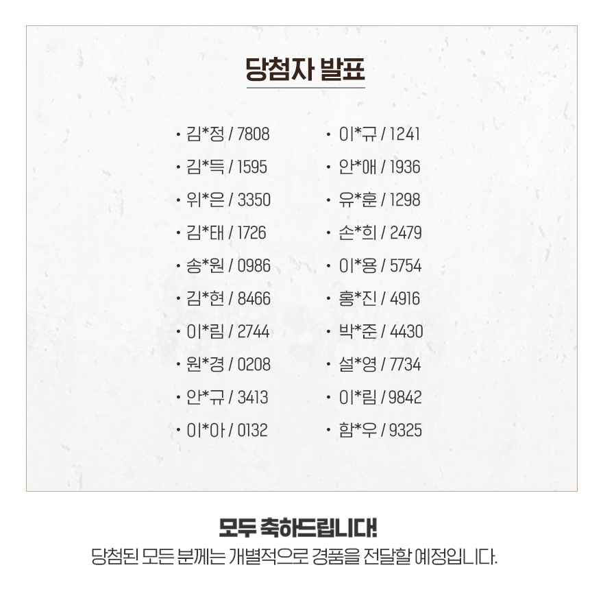 | 파라다이스 그룹 11월 블로그 이벤트 5회차 당첨자 발표 (0) | 2021.11.22 |