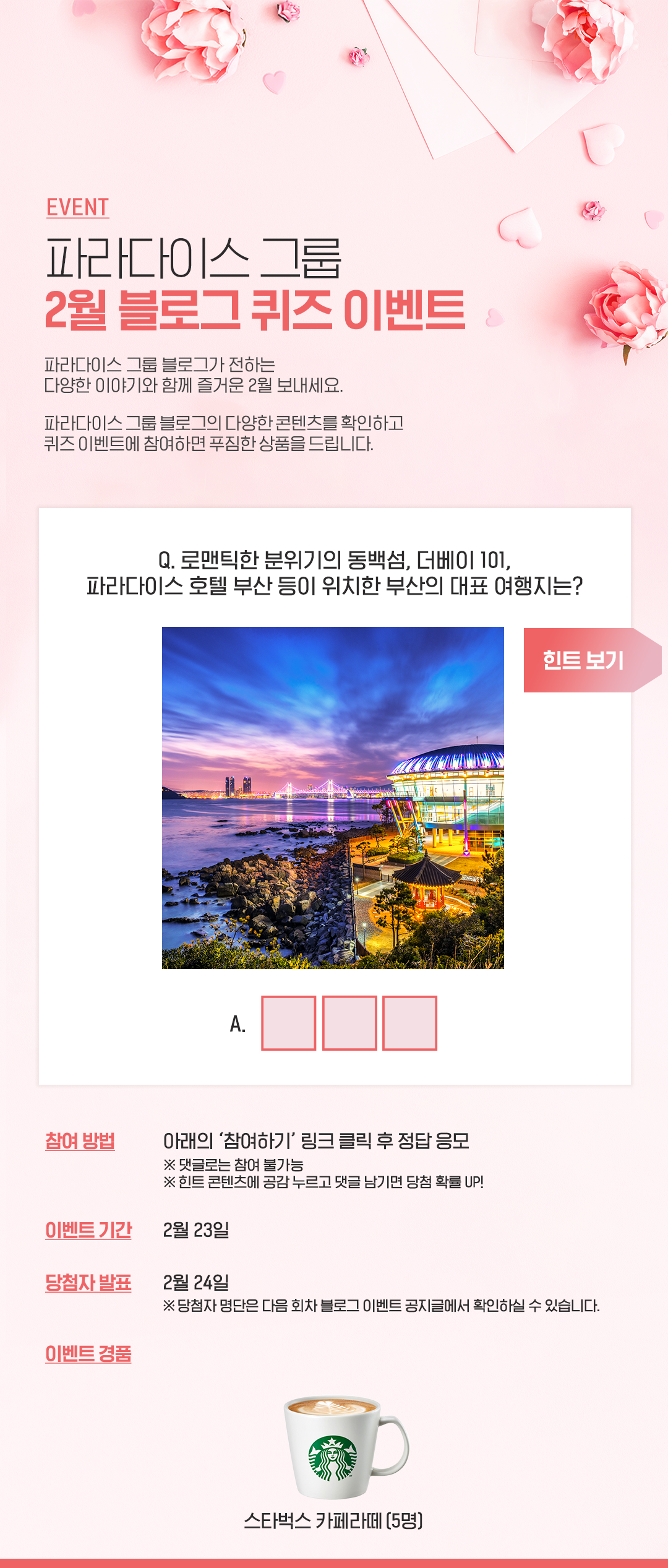 | 파라다이스 그룹 2월 블로그 이벤트 (1회차) (55) | 2022.02.21 |