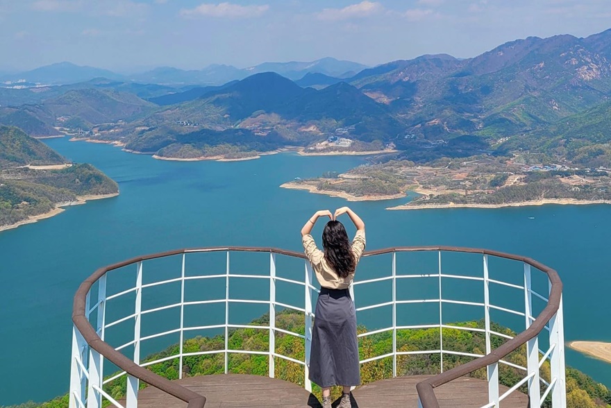 청풍호에 봄맞이 드라이브를 즐길 예정이라면 비봉산 전망대를 꼭 방문하세요! 전망대에 오르기 위해 탑승하는 청풍호반 케이블카 또한 색다른 재미 요소인데요. 케이블카 중 일부는 바닥까지 투명해 창밖으로는 호수를, 바닥으로는 푸른 숲을 볼 수 있어 자연의 웅장함과 경이로움을 느끼게 해줍니다. 케이블카의 종착지인 비봉산 전망대에 오르면 사방이 푸른 청풍호로 둘러싸인 듯한 느낌을 받을 수 있는데요. 호수가 아닌 넓은 바다 한가운데의 섬에 오른 듯한 기분을 느낄 수 있습니다.