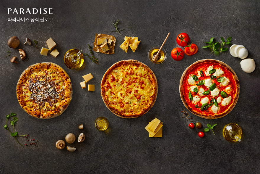 파라다이스 호텔&리조트는 파스타 2종, 피자 3종, 중식 3종으로 총 8가지의 메뉴를 프리미엄 가정간편식(HMR)으로 선보였습니다. 먼저 소개할 피자 3종은 '트러플풍기 화덕피자', '마르게리타 화덕피자', '콰트로치즈 화덕피자'인데요. 피자의 생명은 도우! 파라다이스 호텔&리조트의 프리미엄 가정간편식 피자는 이탈리아 현지에서 공수한 재료로 반죽한 피자 도우를 48시간 숙성한 후에 화덕에 구운 것이 특징인데요. 때문에 집에서도 화덕피자 특유의 쫄깃한 맛을 즐길 수 있습니다.