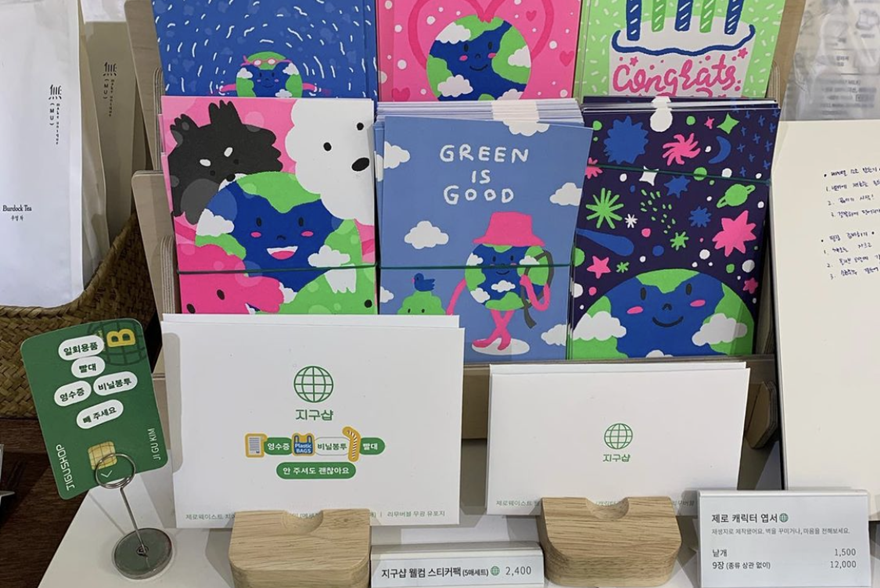 이런 경우 <영수증 안 주셔도 괜찮아요>와 같은 스티커를 신용카드에 부착하면 상대방에게 별도로 얘기하지 않아도 자연스럽게 제로 웨이스트를 실천할 수 있겠죠? 연남동과 상도동에 위치한 제로 웨스트 샵인 지구샵에는 제로 웨이스트 입문자에게 용기와 다짐을 불어 넣어줄 굿즈는 물론, 다양한 환경 보호 관련 제품과 비건 간식 등을 판매하고 있습니다.