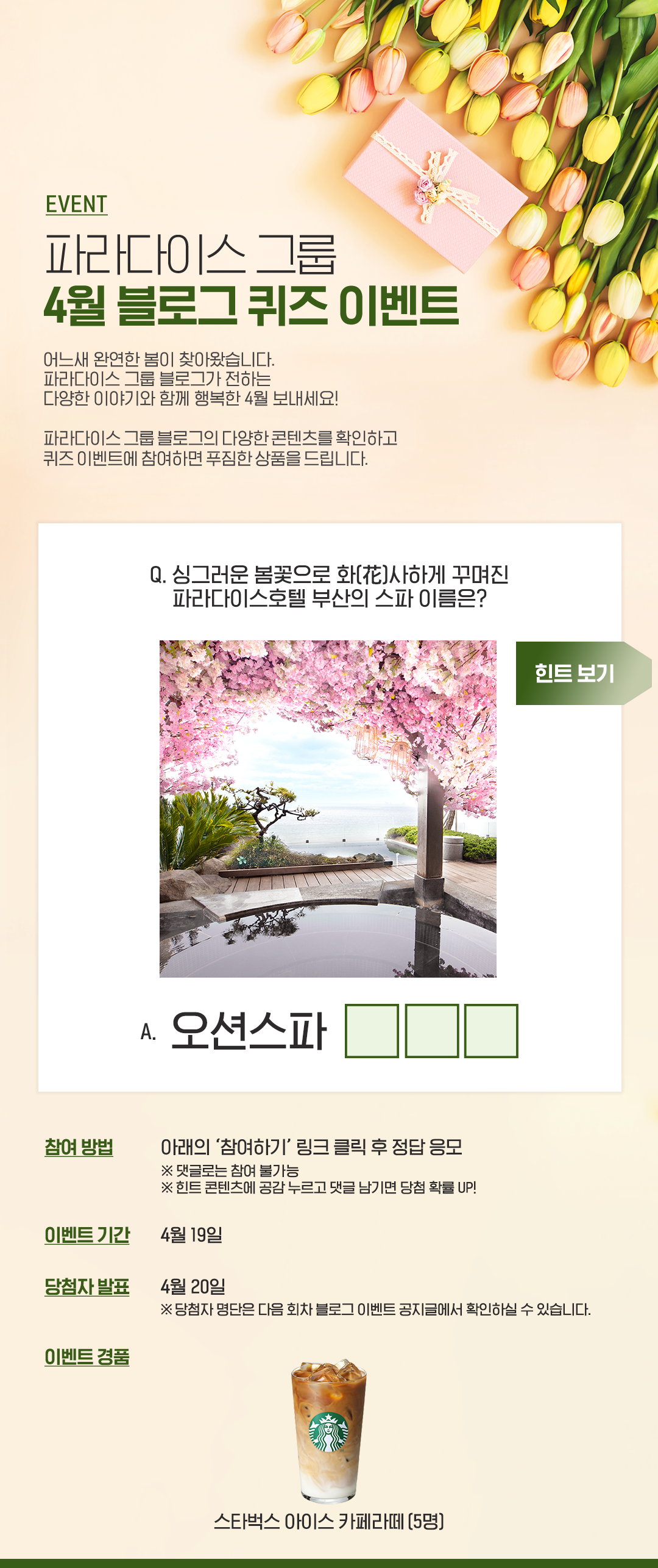 파라다이스 그룹 4월 블로그 이벤트