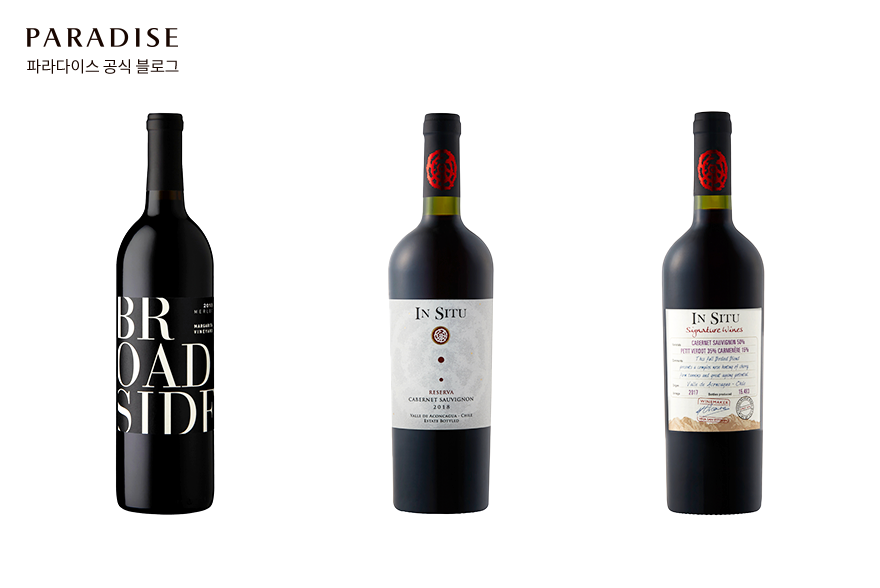 먼저 소개할 와인은 ‘브로드사이드 마가리타 빈야드 파소 로블스 메를로 (Broadside Margarita Vineyard Paso Robles Merlot)’입니다. 브로드사이드는 젊은 양조가들의 도전의 땅, 캘리포니아 파소 로블스 지역에서 재배한 포도를 활용했는데요. 다양한 향을 뽐내는 포도를 재배할 수 있어 개성 넘치는 와인을 만나볼 수 있습니다.