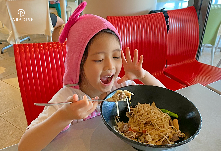 파라다이스 스파 도고는 고객들의 즐거운 미식 경험을 위해 올해부터 다양한 신메뉴를 출시하고 있습니다. 간단한 패스트푸드 위주로 구성된 다른 스파나 워터파크와는 달리 엄선한 식재료를 활용한 프리미엄 메뉴를 선보이고 있죠. 신나게 물놀이와 스파를 즐긴 조 과장의 가족도 출출한 배를 채우기 위해 푸드코트로 향했습니다.