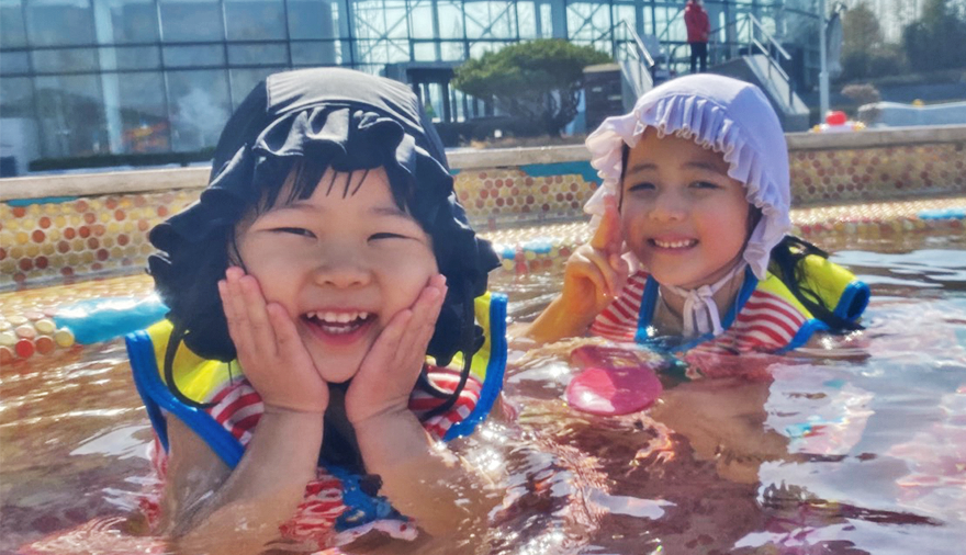 물놀이를 좋아하는 7살 조하율 양과 언니랑 노는 게 제일 즐거운 4살 조서율 양. 파라다이스 스파 도고에 도착하자 두 아이는 설레는 표정으로 시설을 하나씩 체험합니다. 실내에는 아이들이 안전하게 놀기 좋은 유아풀과 치료목적으로도 활용되는 바데풀이 있는데요. 모든 시설이 최적의 수온으로 유지되고 있어 온 가족이 편하게 스파를 즐길 수 있었습니다.