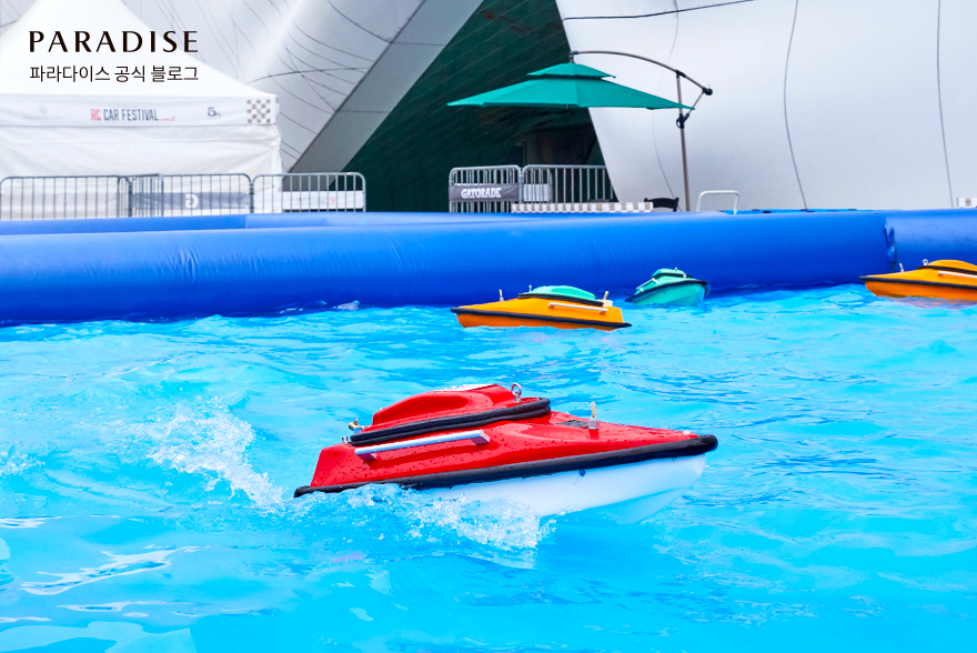 이번 페스티벌은 플라자 광장에 설치된 실내 메인 RC 서킷과 플라자 3층에 조성된 미니 RC 체험존, 크로마 스퀘어에 마련된 야외 RC 서킷, 야외 RC 보트 체험존 등 파라다이스시티를 찾은 어린이 손님은 물론 어른들의 동심까지 자극할 다채로운 프로그램들로 구성되었는데요. 특히 올해는 물 위를 달리는 RC보트도 직접 운전할 수 있어 더 특별합니다.