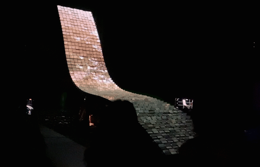 전시작 중 체험단의 발길을 가장 오랫동안 머물게 한 작품은 ‘김준서X보라리’작가의 <난외>입니다. 압도적인 규모와 웅장한 스케일이 돋보이는 작품인데요. 12개의 종이 날개로 이루어진 모듈이 빠르게 돌아가고 그 위로 바다 영상이 쏟아지며 실제로 물이 움직이는 듯한 느낌을 자아냅니다. 체험자들은 자연스럽게 작품을 바라보며 ‘물멍’하는 힐링의 시간을 가졌습니다.