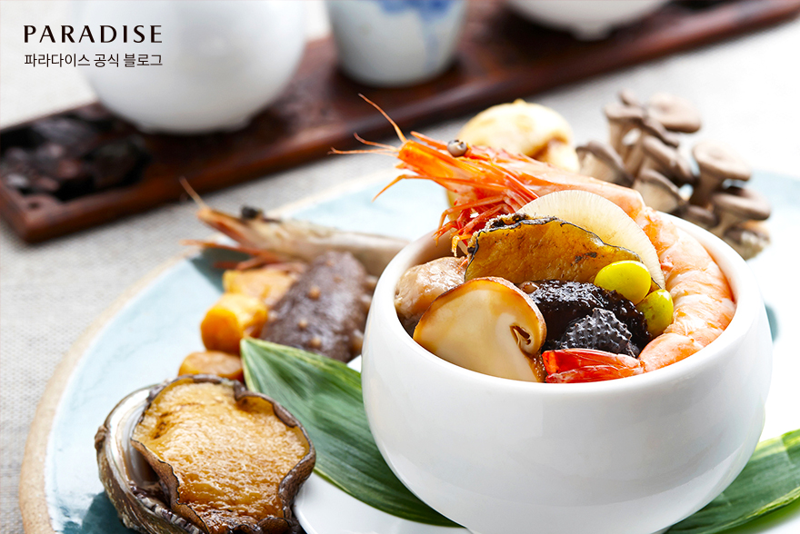 다음으로 소개할 메뉴는 산해진미를 한 그릇에 담아낸 남풍의 ‘불도장’입니다. 파라다이스 호텔 부산의 중식당 남풍은 정통 광동식 중화요리를 한국식으로 재해석해 선보이고 있는데요. 남풍의 인기 메뉴 ‘불도장’은 샥스핀, 자연산 송이, 전복 등 최고급 식재료를 쪄내 깊은 육수 맛이 일품입니다. 남녀노소 즐길 수 있는 중국 최고의 보양식 ‘불도장’으로 여름이 오기 전 기력을 충전해 보는 건 어떨까요?