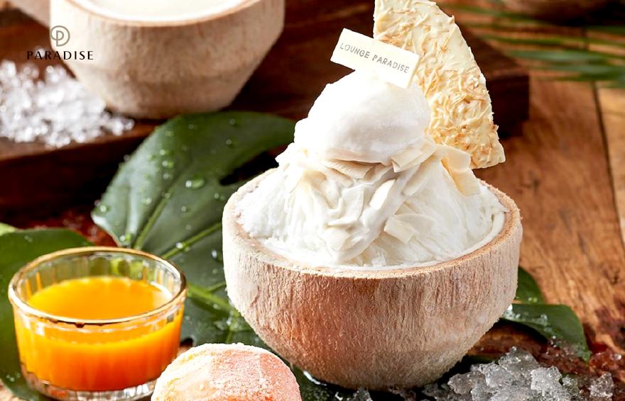 파라다이스시티에서는 또바 빙수 외에도 프리미엄 코코넛 빙수를 함께 즐길 수 있죠. 코코넛 빙수는 해외여행을 떠나지 않아도 느낄 수 있는 이국적인 맛으로 많은 사랑을 받고 있습니다. 여름이면 생각나는 열대과일인 코코넛의 부드럽고 달콤한 맛과 향이 돋보이는 코코넛 빙수에는 궁합이 잘 맞는 홍시 퓨레가 함께 나오는데요. 코코넛 아이스크림이 올라간 빙수에 곁들여 먹으면 쉽게 맛보지 못했던 고급스러운 풍미가 느껴진답니다. 이번 여름엔 또바 빙수와 코코넛 빙수를 통해 호텔 빙수의 품격을 직접 경험해 보면 어떨까요?