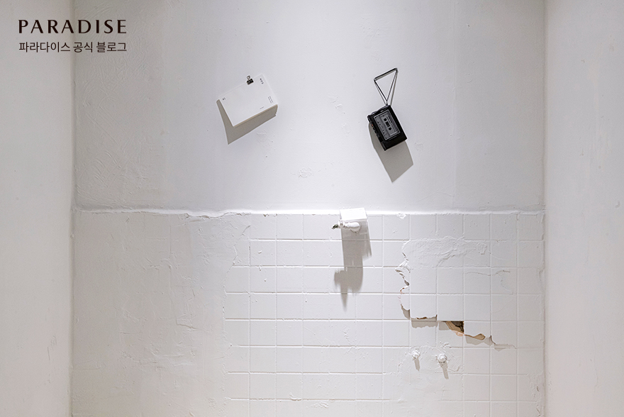 다음으로 송미경 작가가 2019년 베를린에서 작업한 ‘하얀집(White House)’ 프로젝트의 책과 카세트 테이프가 전시되어 있습니다. 이 책과 카세트 테이프는 단순히 보기만 하는 용도로 전시되어 있는 것이 아닌데요. ‘관객이 책을 읽고, 카세트 테이프를 재생하여 소리를 들어볼 것인가’라는 작가의 궁금증도 담겨 있답니다. 전시를 방문한다면 오래된 카세트 테이프를 직접 재생하여 사운드와 함께 작품을 즐겨보는 건 어떨까요?