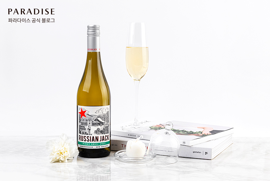 첫 번째로 소개할 와인은 비노파라다이스에서 새롭게 선보이는 ‘러시안 잭 피노 그리(Russian Jack Pinot Gris)’입니다. 뉴질랜드 최고의 와인 산지인 말보로 지역의 따스한 햇볕과 쌀쌀한 바닷바람을 맞으며 자란 피노 그리를 사용해 훌륭한 풍미가 돋보이는 화이트 와인인데요. 향긋한 배와 자스민부터 강렬한 생강 향까지, 오감을 자극하는 향기와 풍성한 질감으로 여름날 함께하기에 가장 완벽한 와인입니다. 아시안 푸드, 훈제 연어, 해산물 바비큐나 샐러드, 치즈와 견과류 등 다양한 음식과도 잘 어울리니 러시안 잭 피노 그리와 함께 싱그러운 여름을 즐겨보세요.