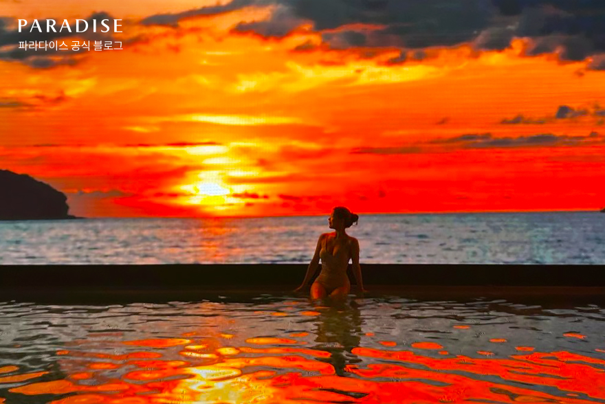 파라다이스시티 씨메르 야외 인피니티 풀은 파란 하늘뿐만 아니라 노을도 환상적입니다. 해가 질 무렵 씨메르의 노을 인피니티 풀 인증샷도 빼놓을 수 없어요! 야외 인피니티 풀에서 환상적인 노을을 바라보며 멋진 하루를 마무리해보세요.