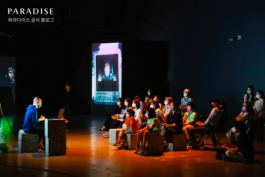 매일 운영한 아티스트 데이에도 관객 분들이 많은 관심을 보여주셨는데요. 2022 파라다이스 아트랩 페스티벌에 참여한 아티스트가 직접 작품에 대해 설명해주는 ‘아티스트 투어’, 아티스트와 관객이 소통하며 인터뷰와 토크 시간을 갖는 ‘톡윗-미’, 그리고 아티스트가 작업 과정과 비하인드 스토리를 직접 보여주는 ‘아티스트 연구실’ 모두 수많은 현장 관객 분들로 채워져 좋은 시간을 만들었습니다.