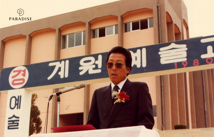 이에 그치지 않고 전 회장은 모친의 유지에 육영사업을 펼쳤습니다. 바로, 계원학원을 설립한 것인데요. 예술 분야의 지원과 교육이 부족했던 시대적 상황에 예술 인재를 육성하고자 하는 그의 의지를 엿볼 수 있습니다. 1980년 3월 20일, 제 1회 입학식을 거행하고 2022년이 된 지금까지도 국내 많은 예술 인재들을 배출하며 명문 학교로 거듭나고 있습니다.