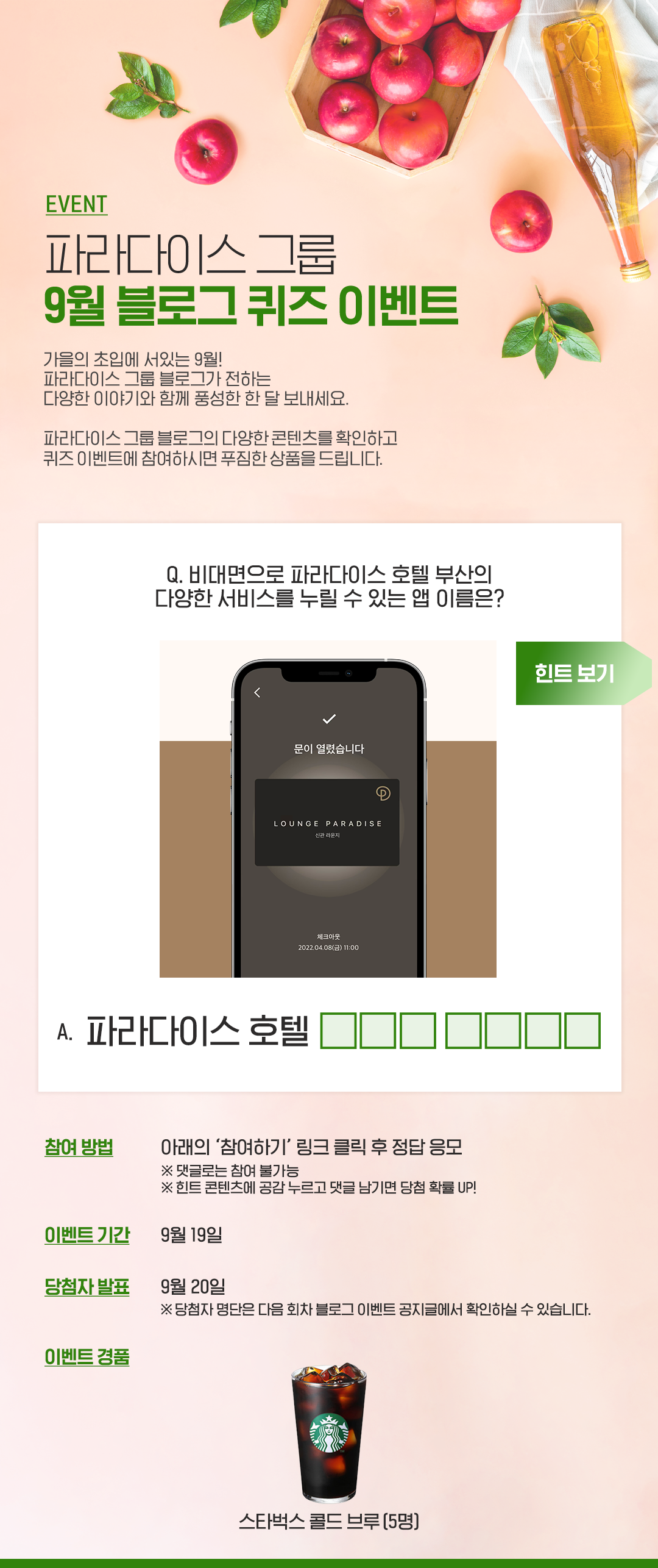 파라다이스 그룹 9월 블로그 이벤트