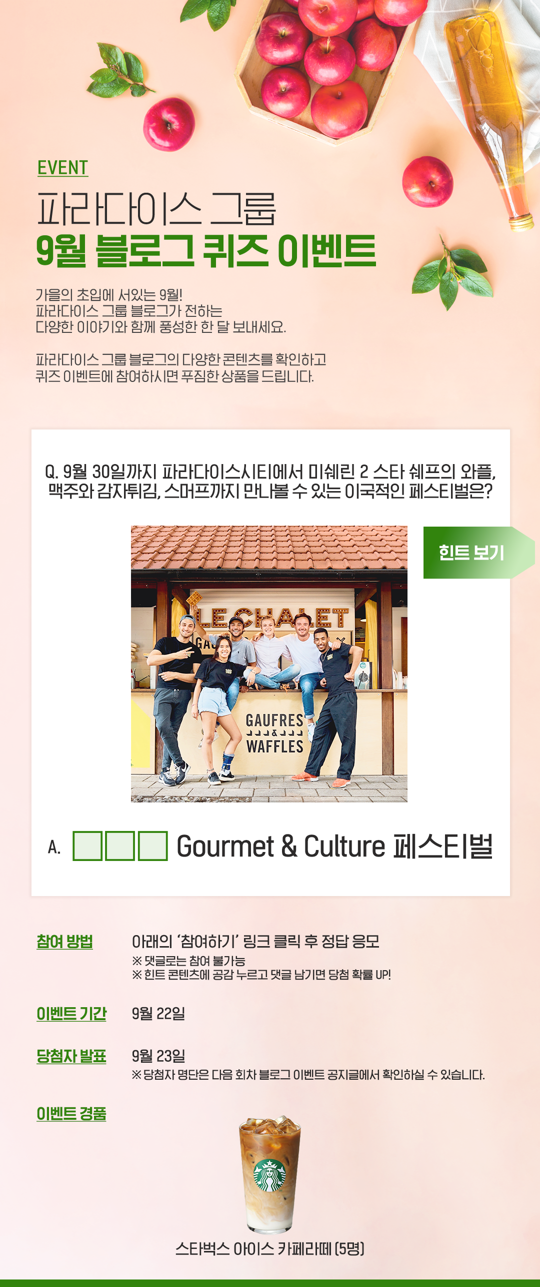 파라다이스 그룹 9월 블로그 이벤트