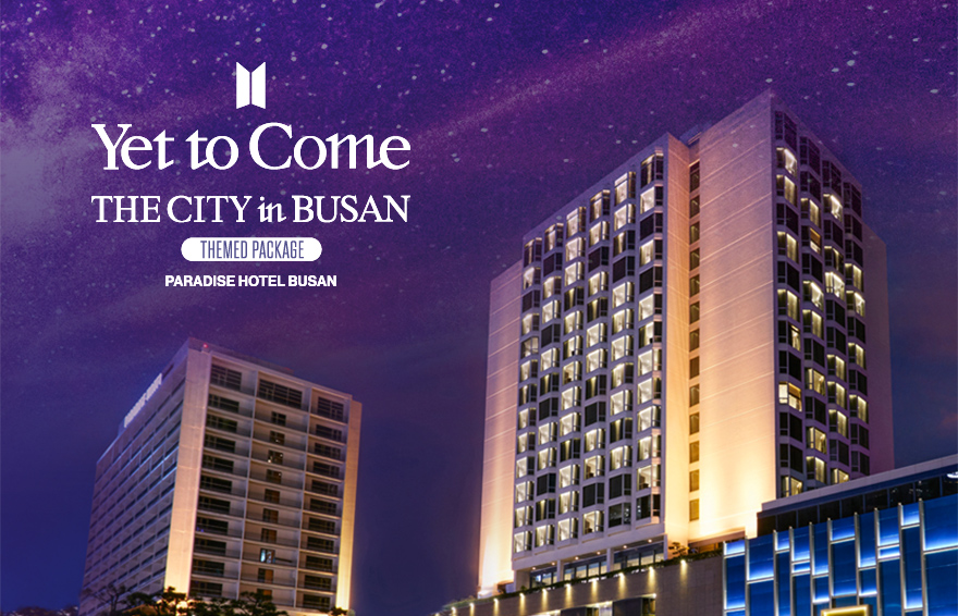 다가오는 10월, 파라다이스호텔 부산이 보랏빛으로 가득 물듭니다. ‘2030 부산세계박람회 유치 기원 콘서트 BTS in BUSAN’을 맞아 진행되는 더 시티(THE CITY) 프로젝트의 테마 패키지에 파라다이스호텔 부산이 동참하게 되었는데요. 파라다이스호텔 부산은 BTS를 경험할 수 있는 다양한 공간과 상품들로 풍성한 이벤트를 제공할 예정입니다. 객실 패키지 이용객을 대상으로 BTS 포토 카드, 어메니티 등을 제공하는 것은 물론 신관 1층의 전용 커뮤니티 라운지를 BTS 아트워크로 꾸며 뮤직비디오를 감상하며 디저트와 음료를 즐길 수 있도록 마련했습니다.