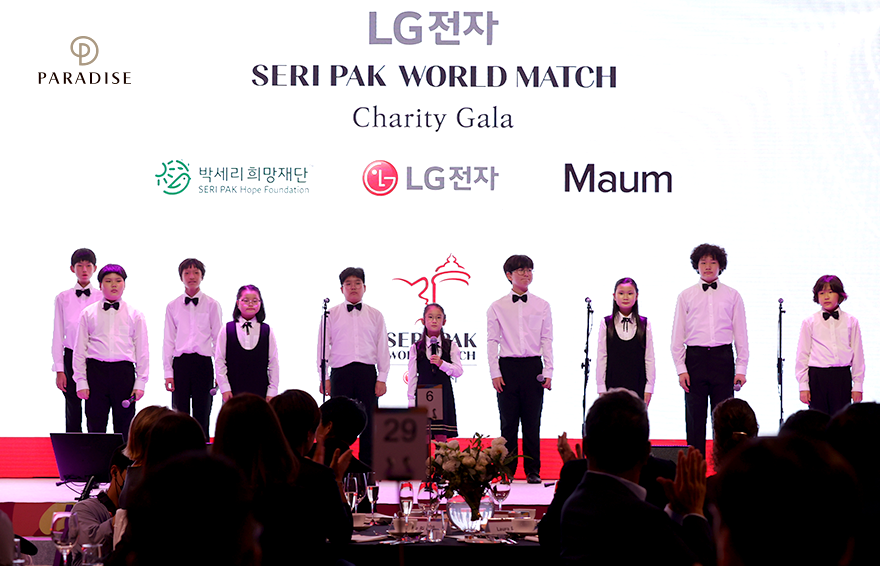 세계 최초 청각장애 아동 합창단 ‘아이소리앙상블’이 의미 있는 멋진 무대에 초청받았습니다. 지난 9월 26일 파라다이스시티 그랜드볼룸에서 개최된 <박세리 월드매치 갈라 디너쇼>의 오프닝 공연으로 자리를 빛낸 것인데요. 7세부터 15세로 구성된 열다섯 명의 단원들 박세리 국가대표 감독을 비롯한 전·현직 골프선수 앞에서 ‘힐더월드(Heal the World)’와 ‘아이윌(I will)’을 부르며 감동적인 공연을 선보였습니다. 아름다운 노래 소리와 근사한 하모니가 돋보였던 무대는 청중들의 뜨거운 박수 갈채를 받으며 마무리되었는데요. 음악을 듣는 것조차 어려워하던 아이들이 편견을 깨고 문화 예술의 중심으로 나아가는 모습을 앞으로도 따뜻하게 응원해주세요.