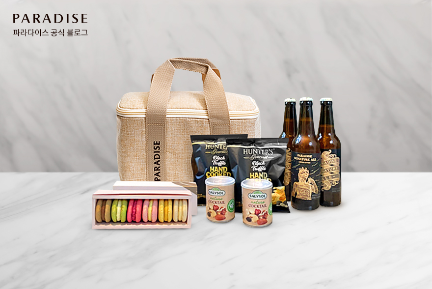 이와 더불어 ‘Enjoy Soccer 2022’ 패키지를 이용하면 풍성한 구성의 시그니처 백이 제공됩니다. 오전 10시부터 오후 9시까지, 가든카페에서 수령 가능한 시그니처 백은 파라다이스 시그니처 에일 3병과 마카롱 6구, 살리솔 믹스 넛츠 2캔, 헌터스 포테이토칩 2봉지로 구성되어 있는데요. 맛과 풍미를 모두 잡은 파라다이스시티의 프리미엄 수제 맥주와 단짠 궁합을 자랑하는 스낵들로 축구 경기를 더욱 짜릿하게 즐길 수 있습니다. 축제의 열기를 더욱 뜨겁게 달굴 ‘Enjoy Soccer 2022’ 패키지와 함께 대한민국의 승리를 기원하고 여유로운 호캉스까지 누려보세요!