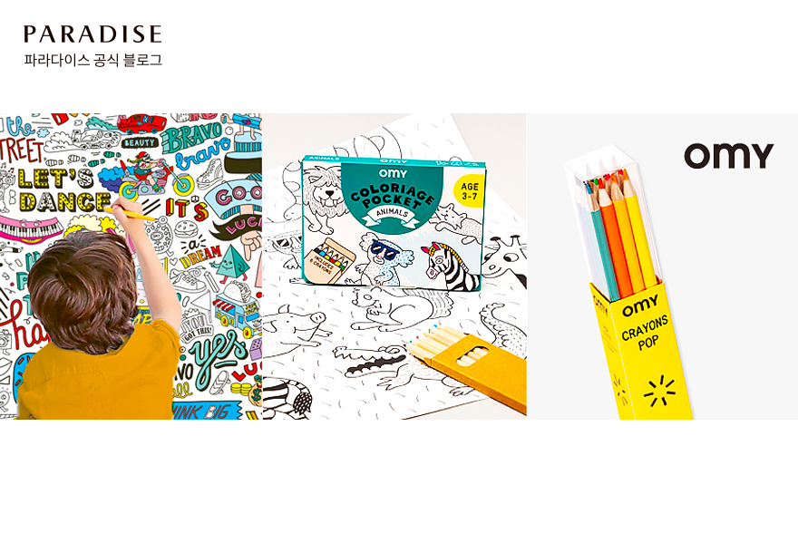 마지막으로 아이와 함께 즐기는 연말 팸캉스를 계획하고 있다면 파라다이스 호텔 부산의 ‘키즈 파라다이스’ 패키지를 추천합니다. ‘키즈 파라다이스’ 패키지 이용객에게는 프리미엄 디럭스 오션 더블 객실 숙박권에 더불어 감성적인 그래픽 아트 브랜드 OMY의 컬러링 포켓과 팝 펜슬 세트가 제공되는데요. 우리 아이의 창의력을 길러줄 OMY의 제품은 파라다이스 호텔 부산에 위치한 라이프 스타일 컨셉 스토어 #PART BUSAN에서 만나볼 수 있습니다.