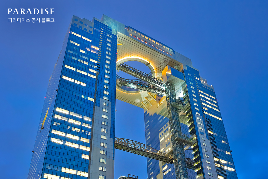 마지막으로 소개하는 오사카 추천 여행 코스는 지상 173m의 높이에서 오사카의 절경을 감상할 수 있는 우메다 스카이 빌딩입니다. 우메다 스카이 빌딩의 쌍둥이 타워 사이에는 360도 파노라마 뷰를 즐길 수 있는 공중정원 전망대가 위치해 있는데요. 엘리베이터와 에스컬레이터도 전면이 투명해 전망대로 올라가면서도 주변 경치를 조망할 수 있습니다.