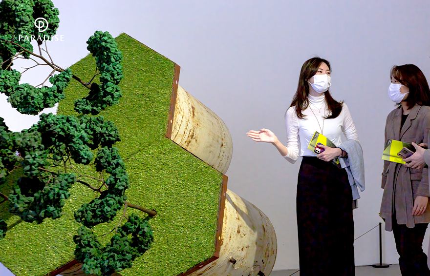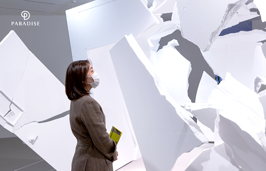 김 매니저와 고 매니저는 전시 처음 마주했던 서민정 작가의 ‘Sum in a point of Time’이 가장 인상깊었다고 합니다. 김 매니저는 근무하고 있는 파라다이스시티의 실제 내부 공간을 형상화해 만든 작품이라 파라다이스시티만을 위한 것 같아 더욱 특별하게 느껴졌다고 하는데요. 한편, 고 매니저는 파편 사이로 작품을 바라보는 다른 관람객의 시선이 존재한다며 서로 마주보는 시선과 소통하며 작품을 감상할 수 있어 더욱 흥미롭다고 전했습니다.