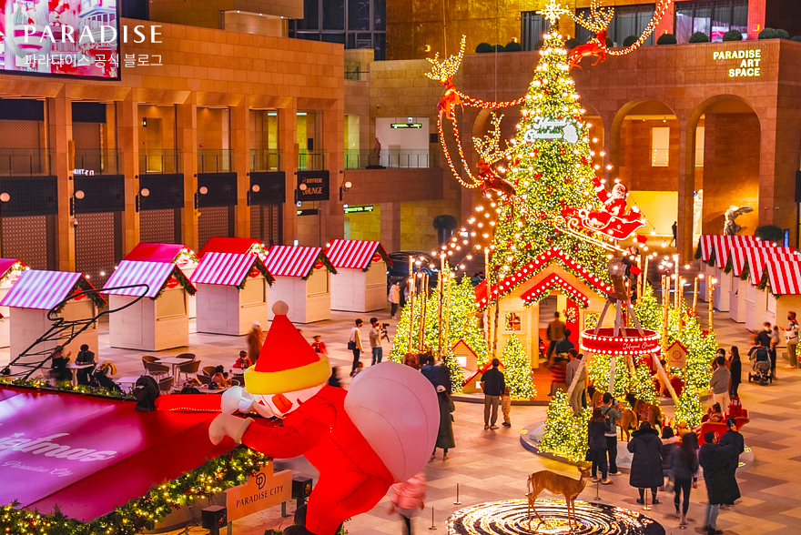다가오는 크리스마스, 거리의 반짝반짝한 조명과 크리스마스 장식을 보고 있으면 설레는 마음이 더욱 커져만 가는데요. 올해 크리스마스에 가볼 만한 곳을 고민 중이라면 주목해 주세요. 화려하면서도 따뜻한 크리스마스 감성이 물씬 풍기는 파라다이스시티 산타빌리지와 크리스마스 마켓이 돌아왔습니다! 파라다이스시티 플라자 광장에서 펼쳐지는 환상적인 산타빌리지와 크리스마스 마켓, 지금부터 자세히 살펴볼까요?