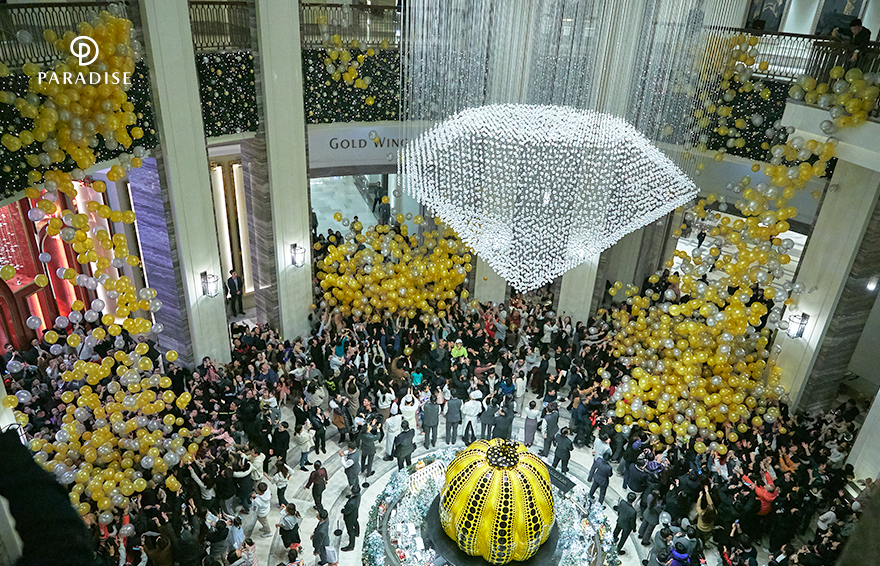 오늘의 체험자는 파라다이스시티 PTIC 파트의 전승재 매니저와 하지인 매니저입니다. 두 파라디안은 같은 팀에서 근무하는 선후배인데요. 한해 동안 열심히 일한 서로를 칭찬하고 격려하기 위해 이번 체험을 신청했다고 합니다. 파라다이스시티에 들어서자 트리를 비롯해 화려하게 펼쳐져 있는 크리스마스 분위기가 두 사람을 맞이했는데요. 그 중에서도 눈에 가장 먼저 띈 것은 블링블링한 크리스마스 분위기로 꾸며진 쿠사마 야요이의 ‘Great Gigantic Pumpkin’입니다. 하 매니저는 작품 앞으로 달려가 포즈를 취하고 두 매니저는 서로의 인증샷을 찍어주었는데요. 연말 파라다이스시티를 방문한다면 최고의 포토 존인 이곳에서 기념 사진 남기는 것을 잊지 마세요.