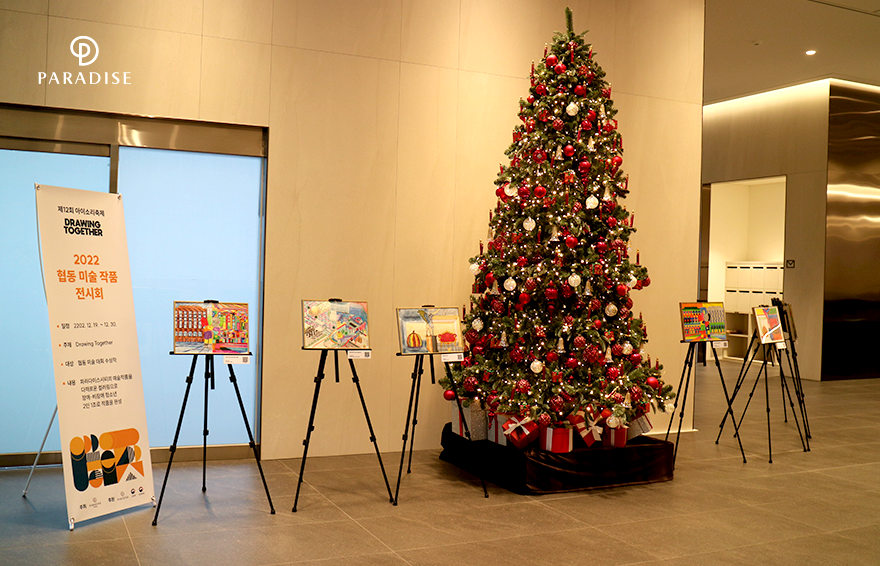 이번에 수상한 협동 컬러링 10개 작품은 오프라인 전시를 통해서 만나볼 수 있습니다. 12월 19일부터 12월 30일까지 서울 중구 퇴계로에 위치한 파라다이스그룹 본사 1층 로비에서 전시가 진행되는데요. 청소년들의 개성이 담긴 다양한 작품을 관람하며 그들이 전하는 따뜻한 메시지도 느껴보세요.
