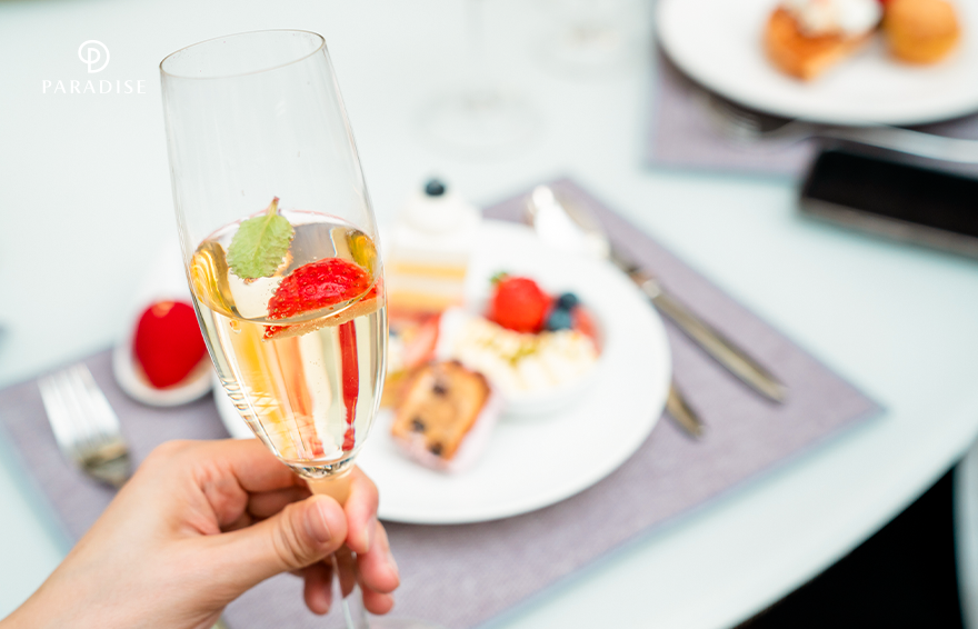 햇살 가득한 일요일 세 명의 파라디안이 기대감 가득한 표정으로 딸기 뷔페에 입장합니다. 딸기 디저트 섹션 바로 앞에 자리를 잡은 세 파라디안은 웰컴 드링크를 받자마자 환호성을 질렀는데요. 빅뱅의 멤버 탑이 블렌딩, 빈티지 등을 직접 선별하고 브랜딩까지 총괄해 많은 이들의 호기심을 자극한 ‘티스팟’ 스파클링 와인을 웰컴 드링크로 제공하기 때문이었죠. 티스팟 와인은 론칭 일주일 만에 세계 온라인 판매 물량이 조기 완판되어 화제를 모으기도 했는데요. 특히 스파클링 와인인 티스팟 브뤼는 신선한 과실의 맛과 꽃내음의 밸런스가 조화를 이루는 산뜻한 맛으로 입맛을 돋우기에 제격이죠. 올 겨울 파라다이스시티의 스트로베리 블라썸에서는 달콤한 딸기 디저트와 함께 그 맛을 즐길 수 있습니다.