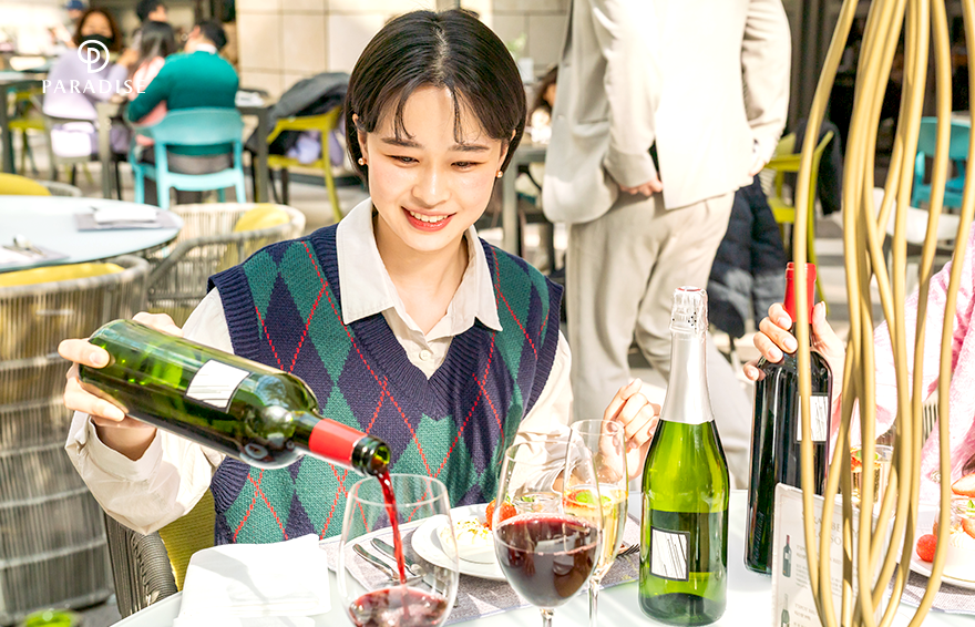 햇살 가득한 일요일 세 명의 파라디안이 기대감 가득한 표정으로 딸기 뷔페에 입장합니다. 딸기 디저트 섹션 바로 앞에 자리를 잡은 세 파라디안은 웰컴 드링크를 받자마자 환호성을 질렀는데요. 빅뱅의 멤버 탑이 블렌딩, 빈티지 등을 직접 선별하고 브랜딩까지 총괄해 많은 이들의 호기심을 자극한 ‘티스팟’ 스파클링 와인을 웰컴 드링크로 제공하기 때문이었죠. 티스팟 와인은 론칭 일주일 만에 세계 온라인 판매 물량이 조기 완판되어 화제를 모으기도 했는데요. 특히 스파클링 와인인 티스팟 브뤼는 신선한 과실의 맛과 꽃내음의 밸런스가 조화를 이루는 산뜻한 맛으로 입맛을 돋우기에 제격이죠. 올 겨울 파라다이스시티의 스트로베리 블라썸에서는 달콤한 딸기 디저트와 함께 그 맛을 즐길 수 있습니다.