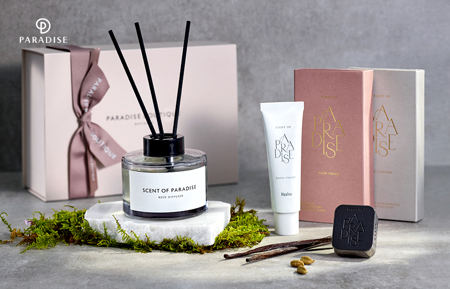 파라다이스 호텔에서의 경험을 일상에서도 느끼고 싶다면 파라다이스시티 공식 홈페이지를 방문해보세요. 지난 12월 홈페이지를 통해 파라다이스 호텔&리조트의 다양한 PB 상품을 판매하는 라이프스타일 온라인 샵을 오픈한 것인데요. 기존 판매되고 있던 밀키트 상품과 함께 파라다이스 호텔에서만 만날 수 있었던 향기 ‘센트 오브 파라다이스’를 담은 디퓨저, 차량용 방향제, 핸드크림을 선보입니다. ‘센트 오브 파라다이스’는 글로벌 기업인 ‘에어아로마(Air Aroma)와 6개월간의 협업을 통해 자체 개발한 파라다이스 시그니처 향으로 먼저 출시했던 디퓨저는 오프라인에서 많은 고객들의 호응을 얻으며 높은 판매율을 기록하기도 했습니다. 이러한 인기에 힘입어 핸드크림과 차량용 방향제까지 연이어 출시하게 된 것인데요. 보다 편리하게 만나볼 수 있는 파라다이스의 PB 상품들과 함께 일상의 작은 행복을 누려보세요.