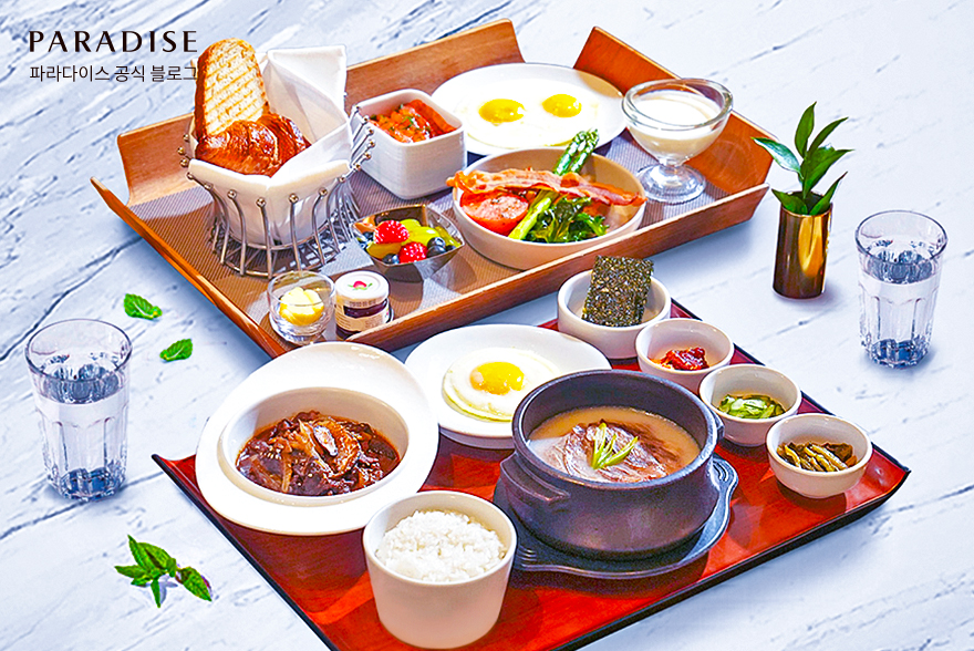 또한 라운지 파라다이스는 최근 메뉴 리뉴얼을 진행해 여유로운 아침 식사를 즐기기에도 좋습니다. 오전시간 동안에는 ‘클래식 모닝(The Classic Morning)’ 컨셉의 메뉴들을 만나볼 수 있는데요. ▲아메리칸 브렉퍼스트 ▲사골곰탕과 불고기 ▲자연송이 전복죽 ▲데리야끼 메론구이와 일본식 야채조림 등 다양한 메뉴가 준비되어 있는 라운지 파라다이스에서 나만의 취향에 맞는 음식을 즐겨보기 바랍니다.